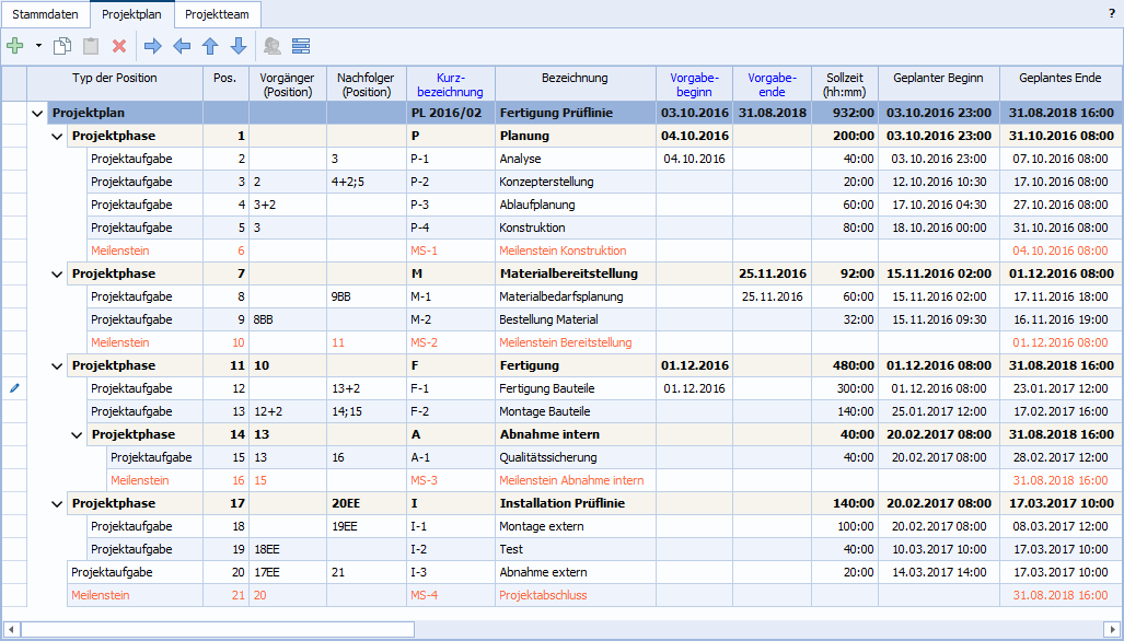 Aufruf: Modulgruppe Projekt - Modul Projekt - Registerkarte Projektplan