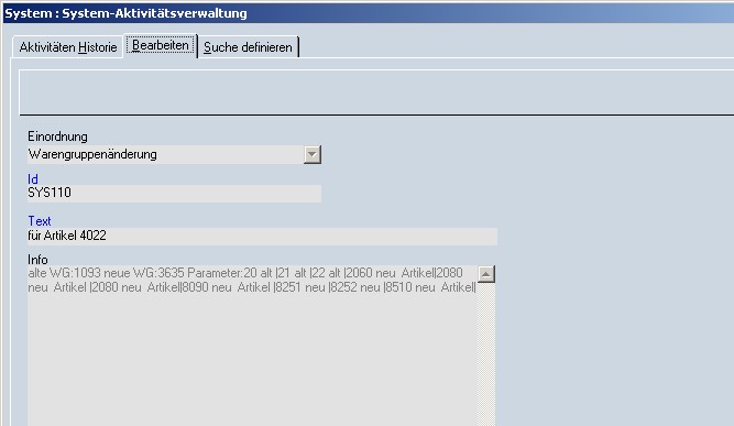 zur Zeit werden protokolliert: •Änderungen von Artikelnummer, Bezeichnung1 und Bezeichnung2 •Warengruppenänderungen von Artikeln •Firmenstamm: Überprüfung der ausländischen USt-IdNr. •Fibu-Schnittstelle: Das Löschen von bereits übergebenen Belegen •Lagerbuchungen: Löschen von manuellen Lagerbuchungen