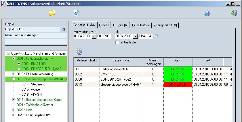 In der Registerkarte "Aktueller Status" wird der aktuelle Status des markierten Objektes innerhalb eines bestimmten Zeitraumes angezeigt. Es ist auch die Mehrfachauswahl von Objekten möglich.