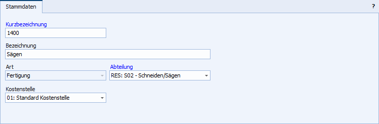 Auf der Registerkarte "Stammdaten" werden die Grunddaten der Ressource gepflegt.