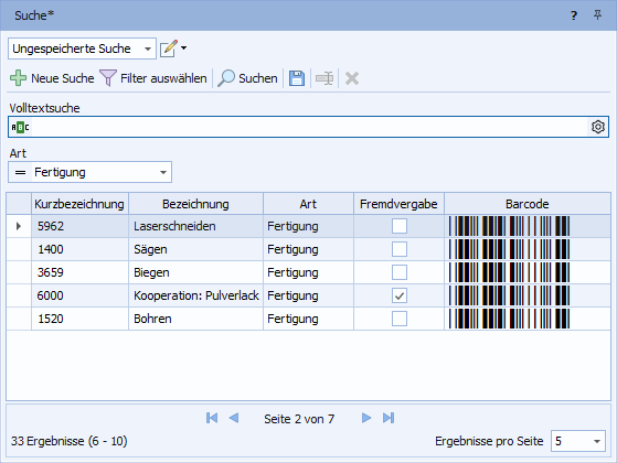 Ressourcen können entweder über die Schnellsuche auf der Registerkarte "Start" im Menüband oder über das Fenster "Suche" gesucht werden.