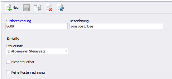 Aufruf: Modulgruppe Einstellungen - Modul Systemvorgaben - Bereich Finanzbuchhaltung - Sachkonten