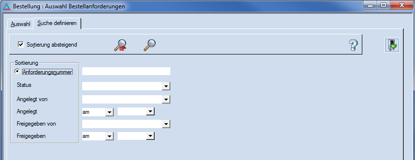Aufruf: Einkauf - Bestellanforderung - Schaltfläche "Suchen"