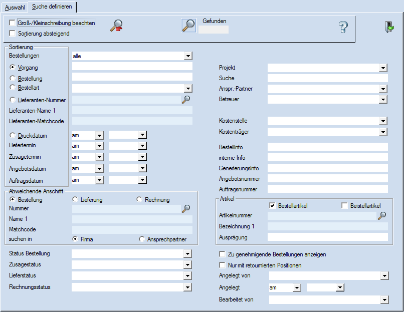 Einschränkung nach dem Inhalt des Feldes "Suche" im Kopf der Bestellung