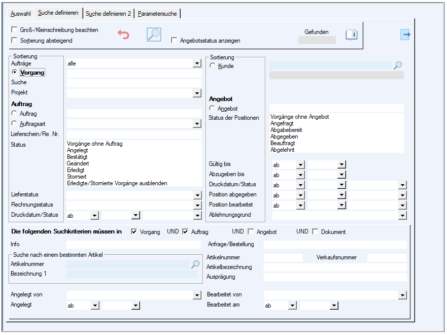 Einschränkung welche Parameter berücksichtigt werden sollen (Vorgangskopf, Positionen, beide)
