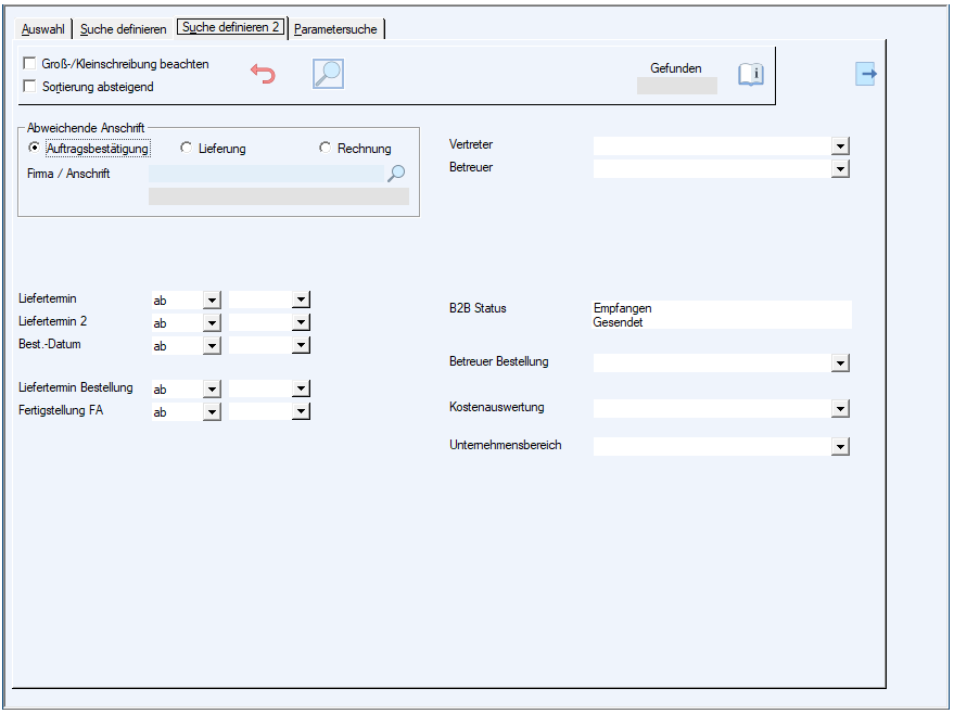 Um die Suche noch weiter einzuschränken, kann zur Registerkarte "Suche definieren 2" gewechselt werden.