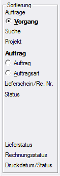Auswahl des Auftragsstatus (angelegt, erledigt, storniert...)
