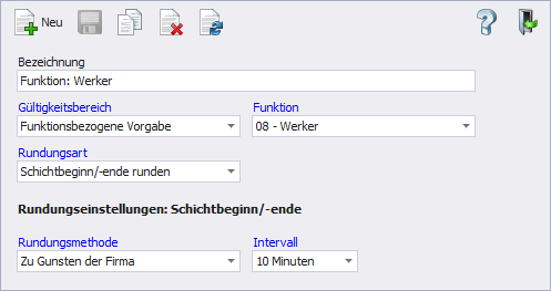 Abb.: Systemvorgabe "Arbeitszeitrundung" - Schichtbeginn/-ende runden