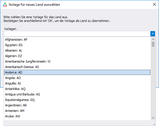 Abb.: Dialog "Vorlage für neues Land auswählen"