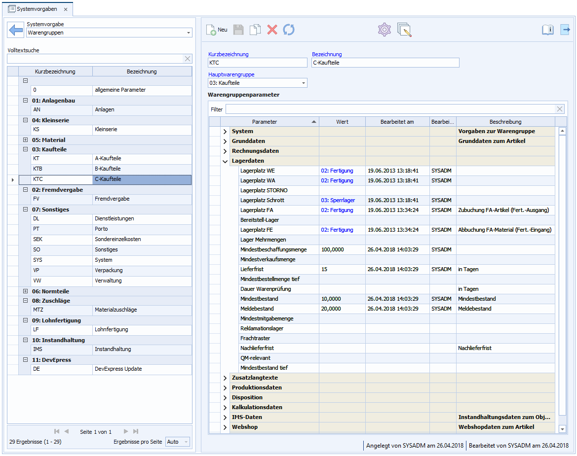 AllgemeinesWarengruppen dienen der Zusammenfassung einzelner Artikel anhand eines oder mehrerer gleicher Merkmale bzw. Eigenschaften. Dabei kann eine Hauptwarengruppe in mehrere Warengruppen untergliedert werden. Mindestens eine Hauptwarengruppe und eine zugehörige Warengruppe müssen vorhanden sein.
