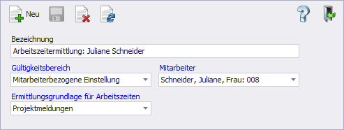 Abb.: Systemvorgabe "Arbeitszeitermittlung für Projektbeteiligte"
