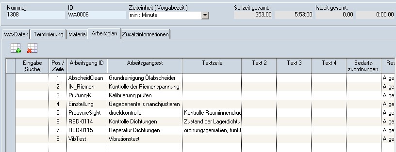 Soll-Einzelstückzeit dieser Position (wird mit der "Sollmenge" des Wartungsauftrags multipliziert)