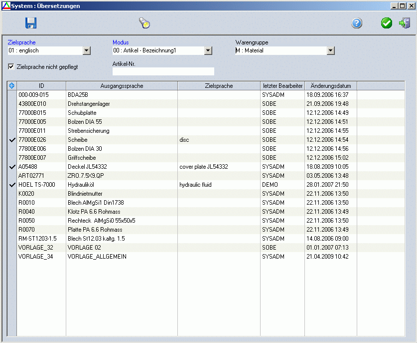 Mit dem Übersetzungsmodul ist es möglich, je nach eingestelltem Modus die Texte in der Fremdsprache zu erfassen, ohne vorher das System umzustellen zu müssen.
