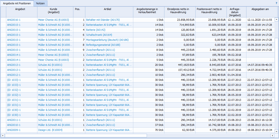 Auswertung Angebote mit Positionen |