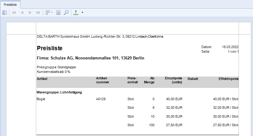 Abb.: Preisliste in Ausgabeformat "Tabelle"