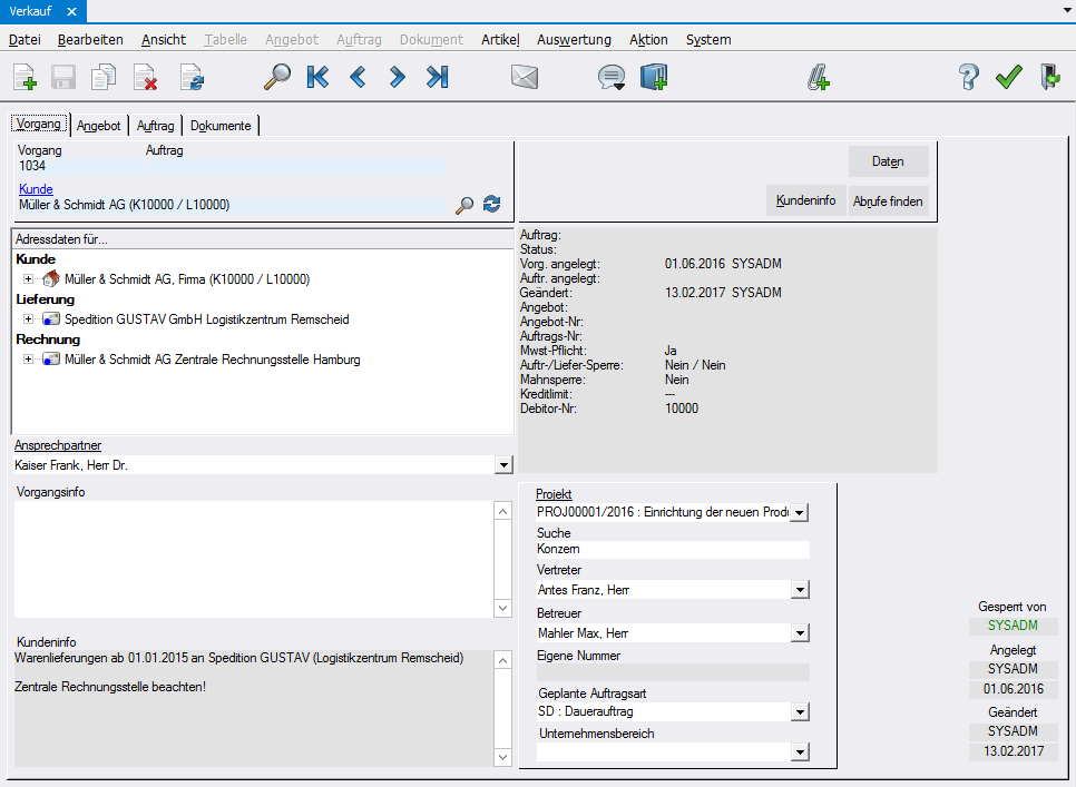 Vorgänge, Angebote, Aufträge, Rechnungen, Lieferscheine erhalten je nach Bearbeitungsgrad vom System einen Status zugeordnet, aus welchem der jeweilige Bearbeitungsstand ersichtlich ist (z.B. bestätigt, (teil-)geliefert, (teil-)berechnet, erledigt). Allgemein sind Änderungen möglich, bis der Status "erledigt" erreicht wurde.