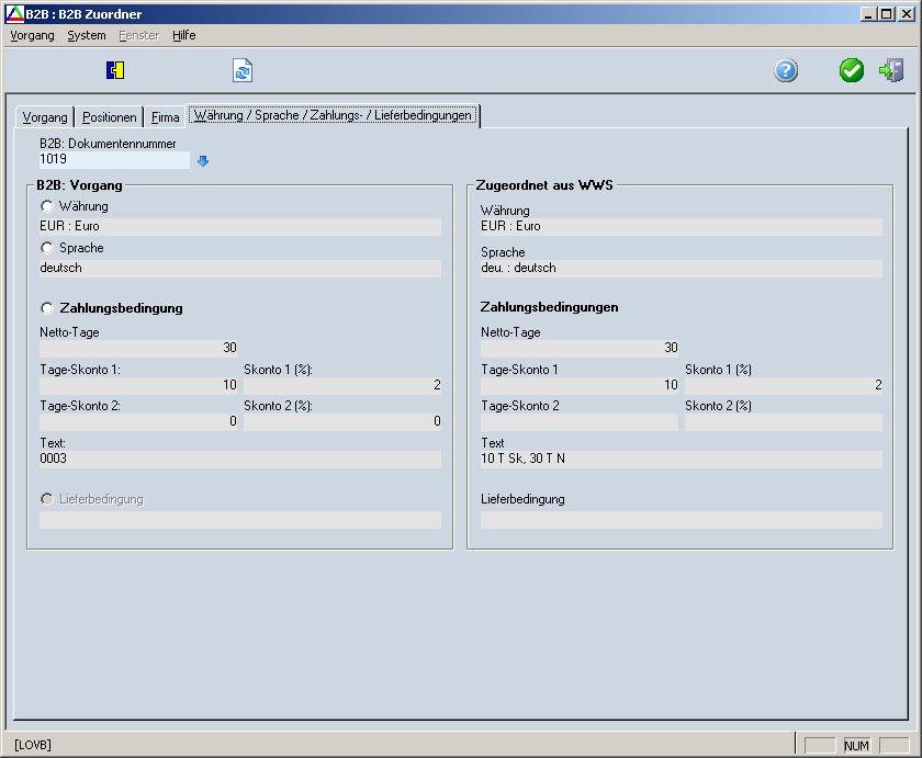 Auch für Währungsdaten, Sprachen und Zahlungs-/Lieferbedingungen müssen Zuordnungen in DELECO existieren.