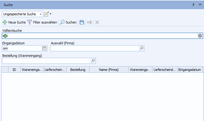 Abb.: Auszug Suche im Wareneingang (ohne vorkonfigurierte Suchen)