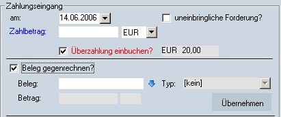 Abb. Zahlungseingänge: Belege gegenrechnen |