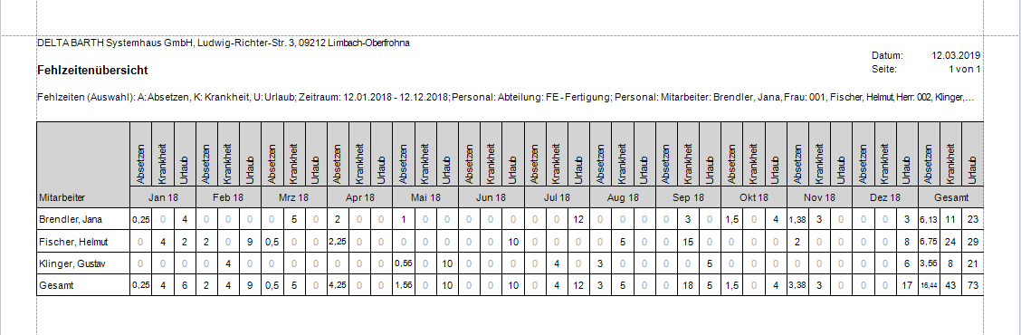 Abb.: Auswertung "Fehlzeitenübersicht" als Bericht
