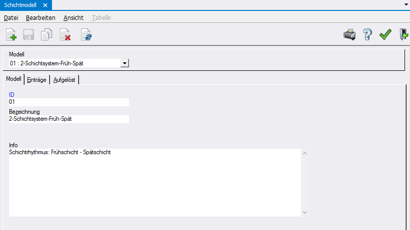 Schichtmodelle basieren auf den hinterlegten Schichtkalendern. Es müssen daher im ersten Schritt die Schichtkalender angelegt werden. Anschließend erfolgt das Erfassen des Schichtmodells.